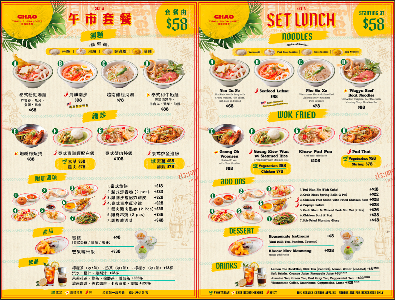 Tucked away from the tourist trail, located in the business district of Kwun Tong, CHAO is the kind of place locals will whisper about and travelers stumble upon by happy accident. The name itself is a promise—Thai, Singaporean, Vietnamese—three culinary powerhouses folded into one unassuming storefront. Inside, the air is thick with the perfume of lemongrass, star anise, and charcoal smoke, a fragrant overture to the symphony of flavors that follows.